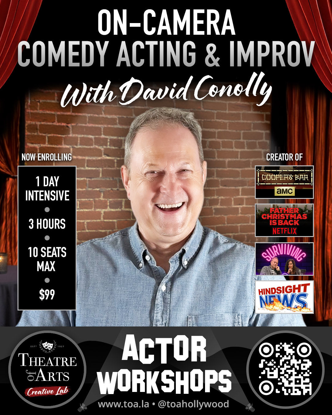 By Popular Demand! Theatre of Arts offers intensive deep-dive workshop courses and seminars a la carte, including cutting-edge subjects of special relevance to 21st century actors. Upcoming courses are listed below. For updates on future workshops, be sure to follow TOA on social media!